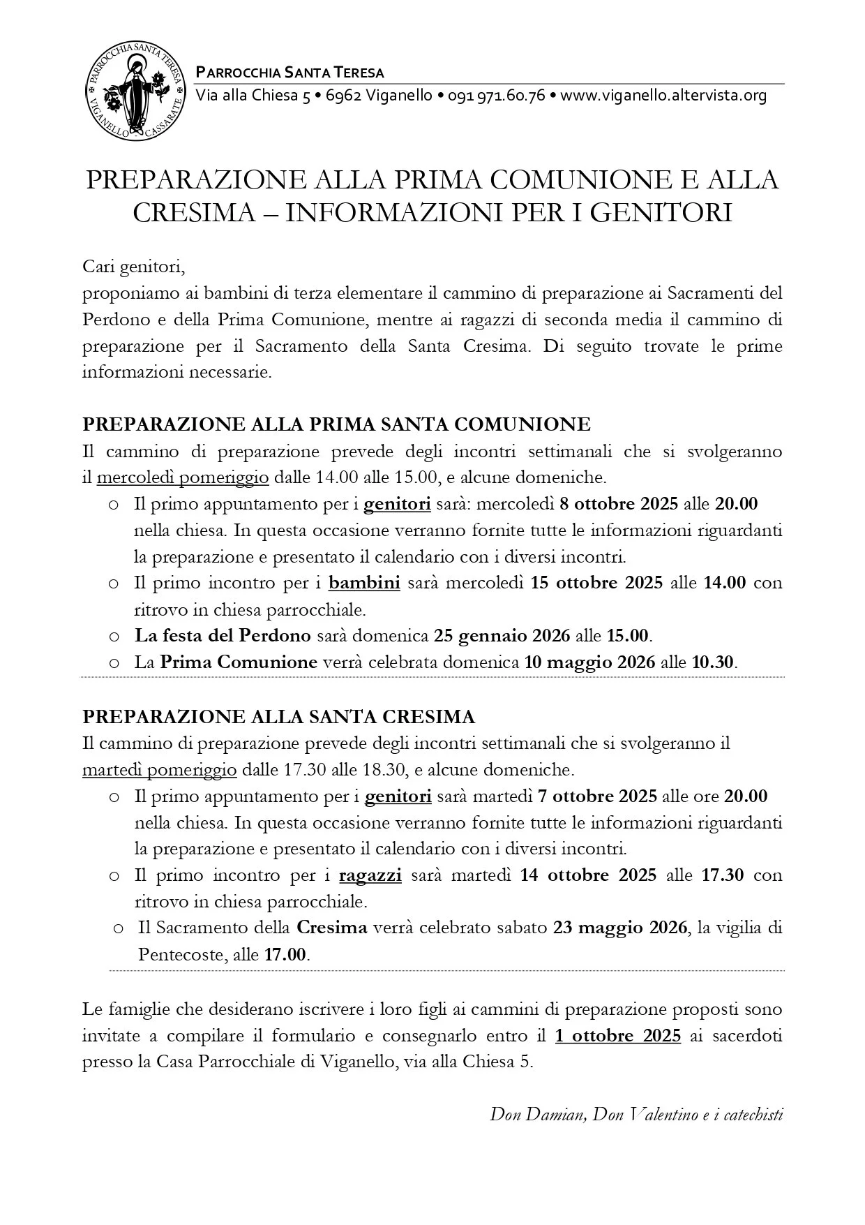 Domenica 5 ottobre – Festa Patronale di Viganello: S. Teresa di Gesù Bambino e del Volto Santo (2 febbraio 1873 - 30 settembre1897)